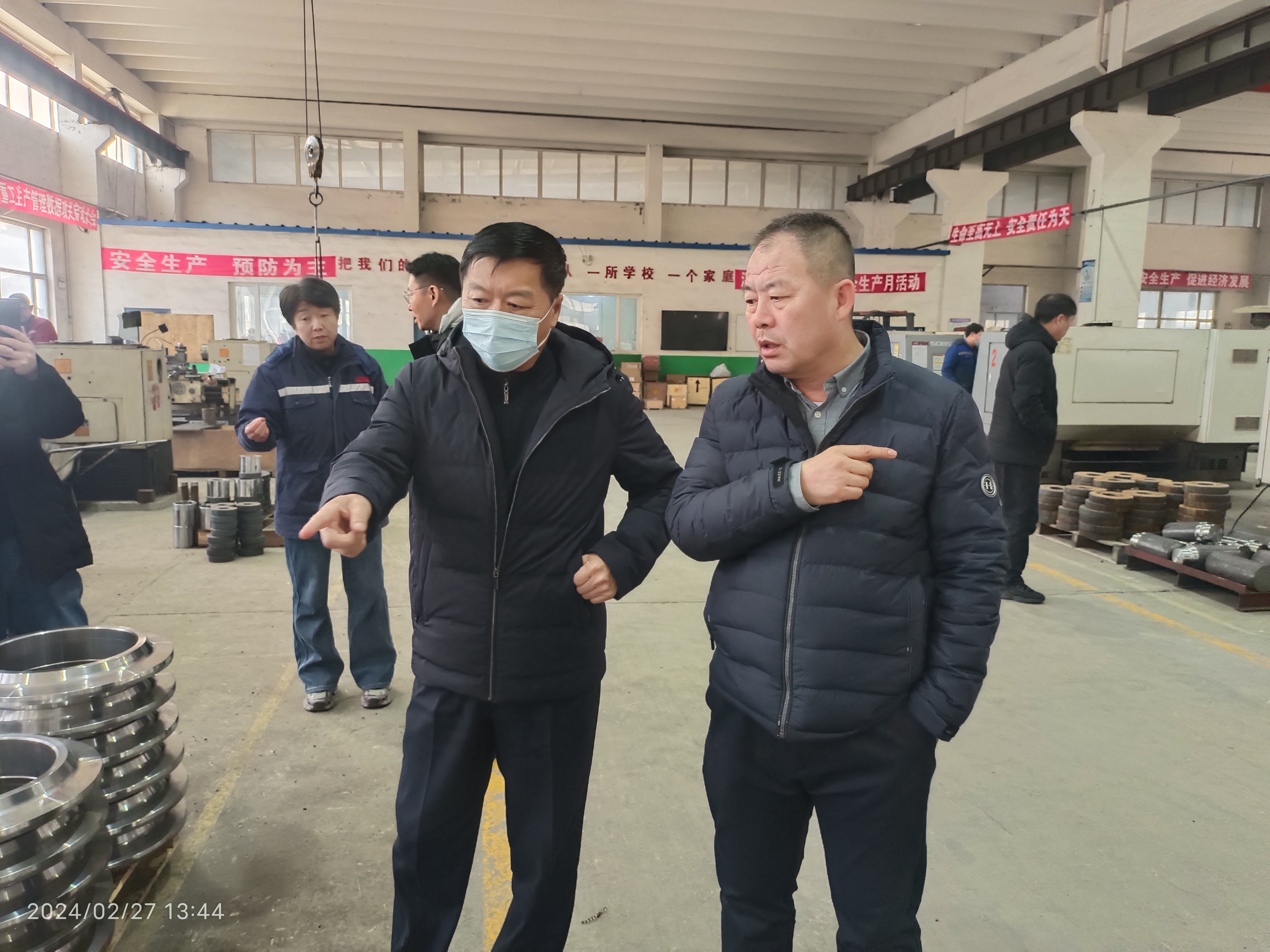 在力天廠區(qū)及生產(chǎn)車間,王總為周總一行介紹了力天公司主營產(chǎn)品、生產(chǎn)工藝、年度銷售規(guī)模等情況。生產(chǎn)車間呈現(xiàn)一片繁忙景象。