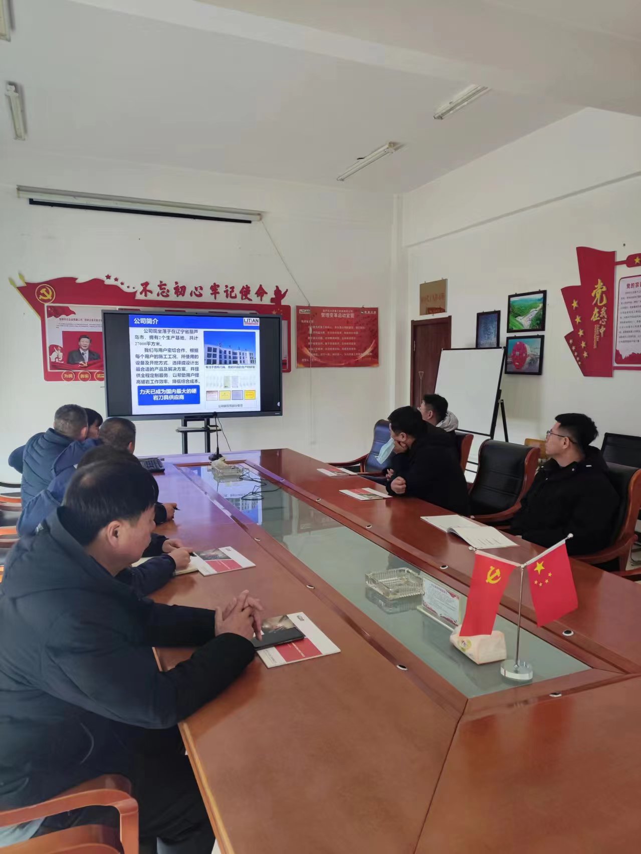 在力天辦公樓會議室,講解員通過PPT就力天重工發(fā)展歷史、產(chǎn)品性能、質(zhì)量控制體系、售后服務(wù)等方面進行了詳細講解,雙方進行了交流會談。力天重工王總對周總一行到訪表示了熱烈歡迎,希望能與我司建立密切合作關(guān)系;周總表示,力天重工作為本地企業(yè),擁有先進生產(chǎn)設(shè)備,其鑿巖釬具、反井鉆滾刀等產(chǎn)品與我司項目需求相符,在考慮性價比的前提下,我司將首選家鄉(xiāng)企業(yè)作為合作伙伴;王總表示將加強與我司相關(guān)人員的聯(lián)系溝通,并根據(jù)我司項目需求提供樣品做現(xiàn)場實驗。