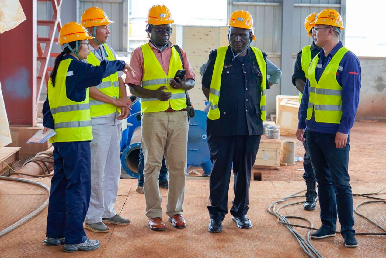 ?;穾焐形赐度胧褂茫瑒⒖傁虬踩靾F(tuán)隊(duì)詳細(xì)介紹了?;穾斓姆謪^(qū)、布局、功能和設(shè)計(jì)優(yōu)勢,強(qiáng)調(diào)了庫房的密封性以及建設(shè)中各類抗?jié)B防水材料的應(yīng)用。安全警察提出,要確保落實(shí)員工安全培訓(xùn)方案,完善消防應(yīng)急制度和設(shè)備,最大程度上降低安全事故發(fā)生的概率。劉總帶領(lǐng)安全警察及其團(tuán)隊(duì)到選冶車間進(jìn)行了參觀,展示了我司近一年以來的建設(shè)成果,安全警察表示十分期待瓦嘎蓋礦業(yè)盡快達(dá)產(chǎn),從而為周邊社區(qū)乃至整個(gè)烏干達(dá)的發(fā)展做出更多貢獻(xiàn)。