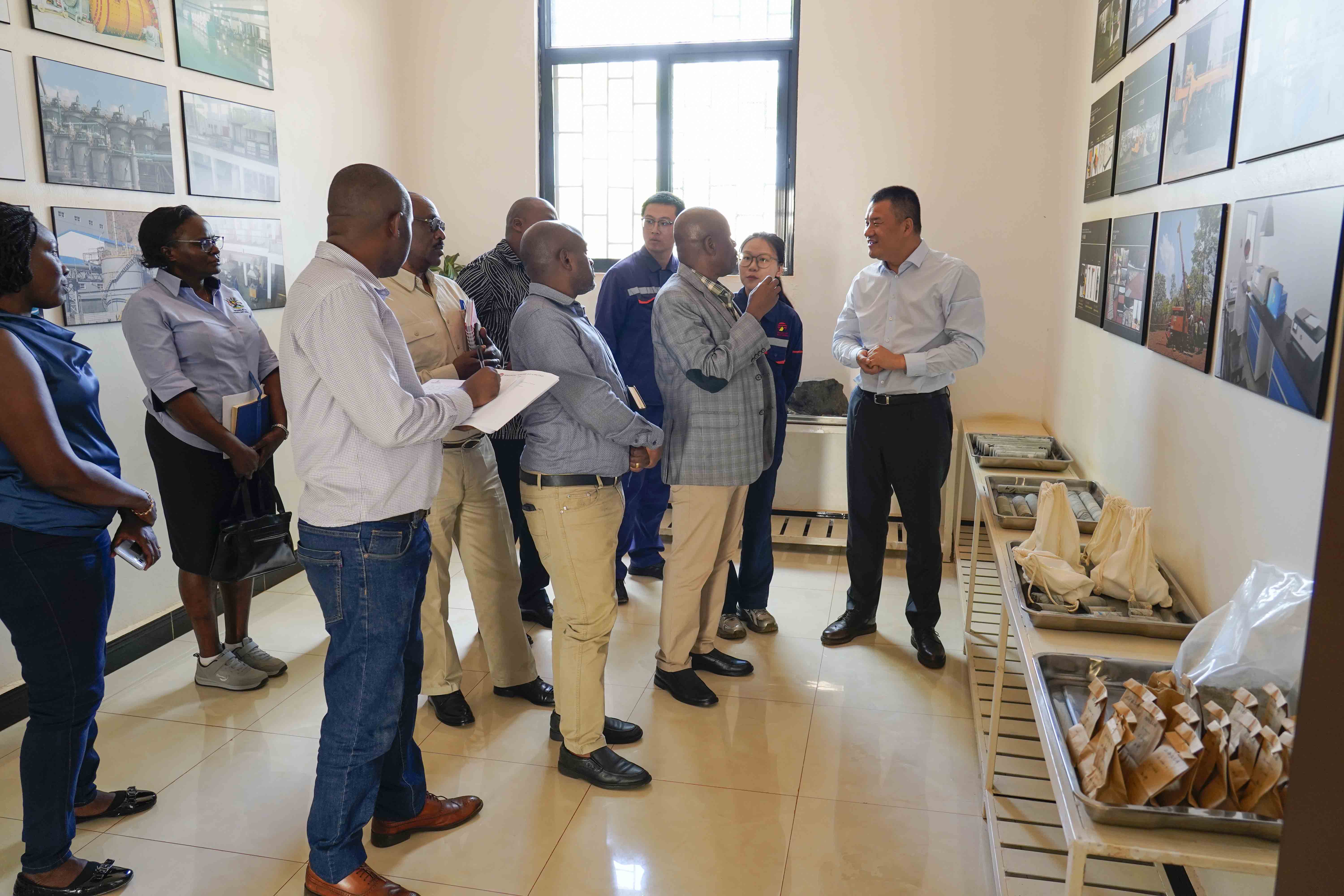 參觀畢,雙方在會議室舉行了會談。貿工部長威斯倫·姆巴蘇·姆巴迪將軍對本次接待表示非常感謝,說他看到瓦嘎蓋公司的規(guī)模是巨大的、技術是先進的,承諾會積極協(xié)調相關部門向我司提供幫助。