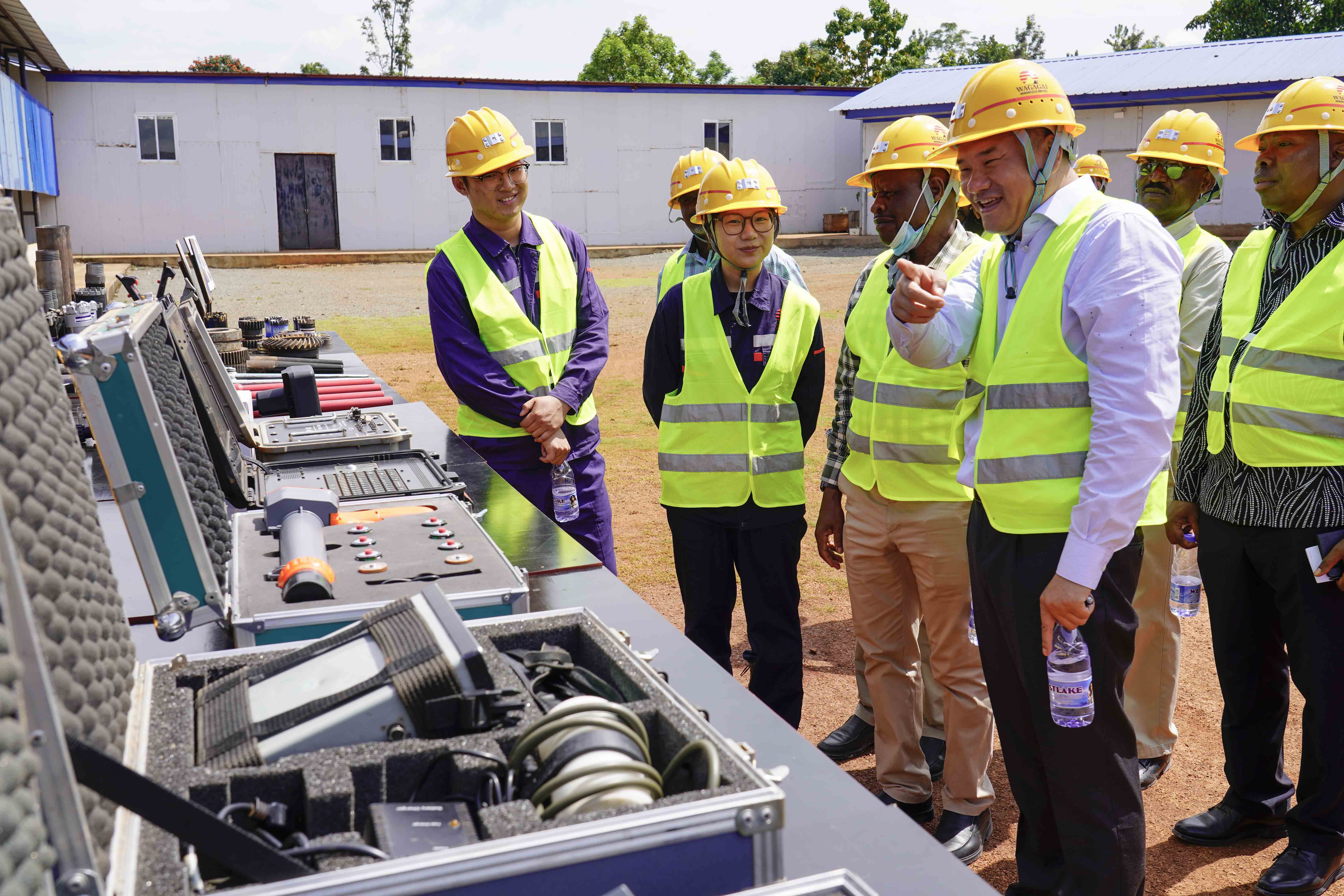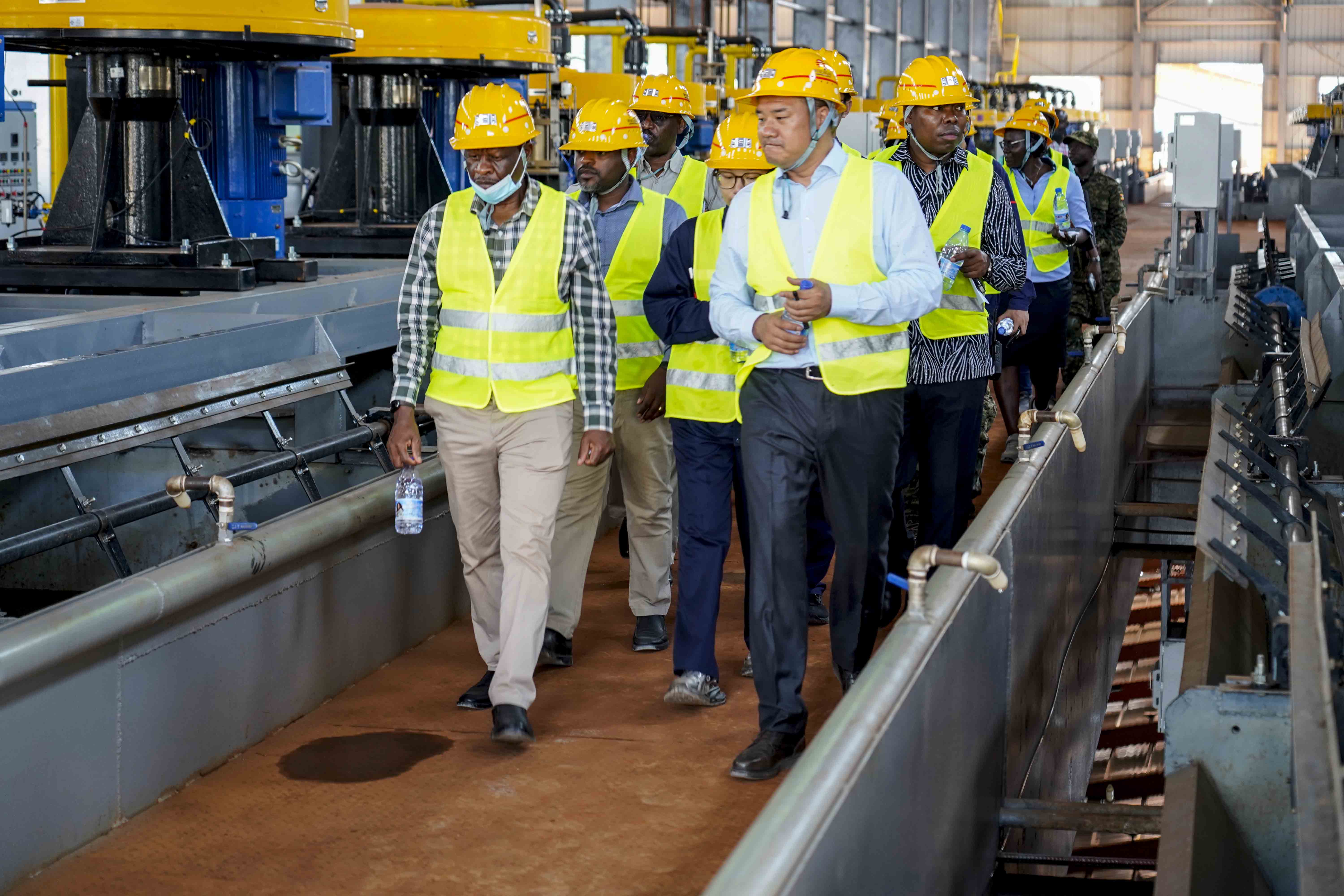當?shù)貢r間2024年10月10日中午,烏干達貿工部國務部長威斯倫·姆巴蘇·姆巴迪將軍、自由區(qū)管理局局長阿林達·基莫米先生、自由區(qū)管理局-業(yè)務拓展與投資者支持部主任麗貝卡·納盧穆等領導及隨行人員一行蒞臨瓦嘎蓋礦業(yè)公司項目現(xiàn)場考察指導。集團總經(jīng)理譚久昌、瓦嘎蓋項目總劉輝、常務副總姜根水、外事經(jīng)理王國超、總經(jīng)理秘書倪冰昕、人資部長賀鵬等對來賓表示熱情歡迎并隆重接待。