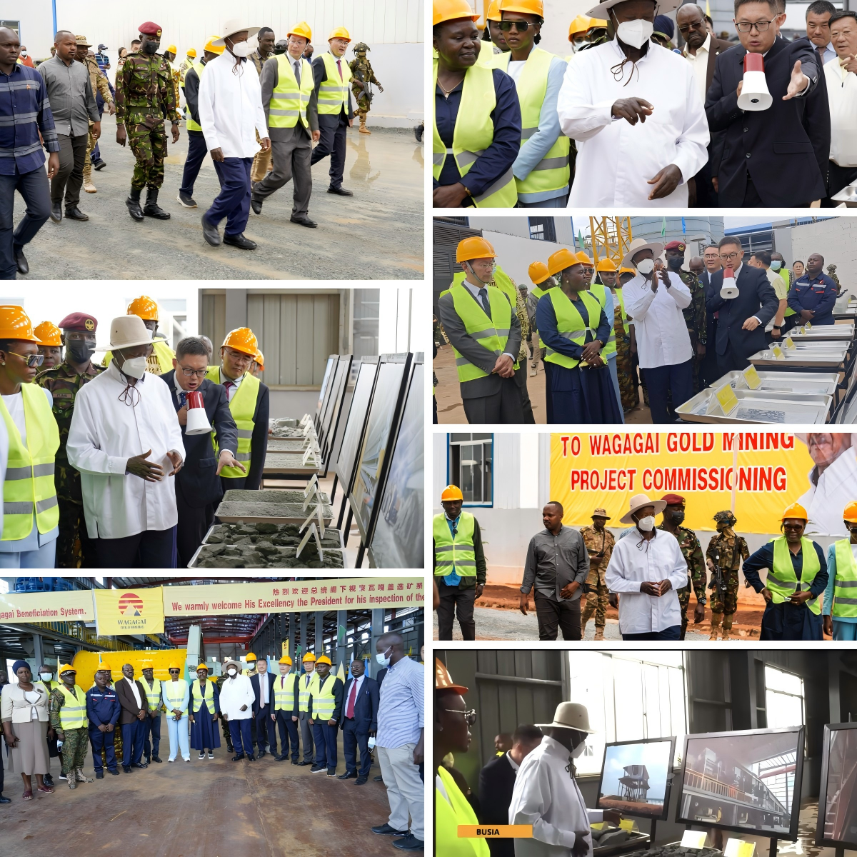 儀式當(dāng)天,經(jīng)過雨水洗滌后的布西亞,陽(yáng)光格外燦爛。瓦嘎蓋金礦廠區(qū)內(nèi),條幅高懸,彩旗飄揚(yáng),紅毯鋪就,數(shù)百名嘉賓和民眾齊聚一堂,等待見證烏干達(dá)礦業(yè)史上的重要時(shí)刻。中午時(shí)分,烏干達(dá)總統(tǒng)約韋里·卡古塔·穆塞韋尼閣下抵達(dá)會(huì)場(chǎng),在中國(guó)駐烏干達(dá)大使館大使張利忠閣下、烏干達(dá)當(dāng)局多位部長(zhǎng)、遼寧宏達(dá)企業(yè)集團(tuán)董事長(zhǎng)譚久剛先生、總經(jīng)理譚久昌先生的陪同下,對(duì)瓦嘎蓋金礦的核心生產(chǎn)系統(tǒng)進(jìn)行了視察。
