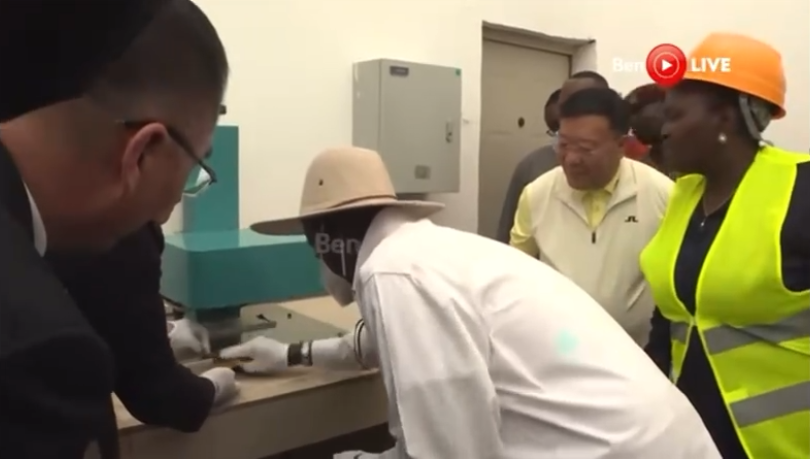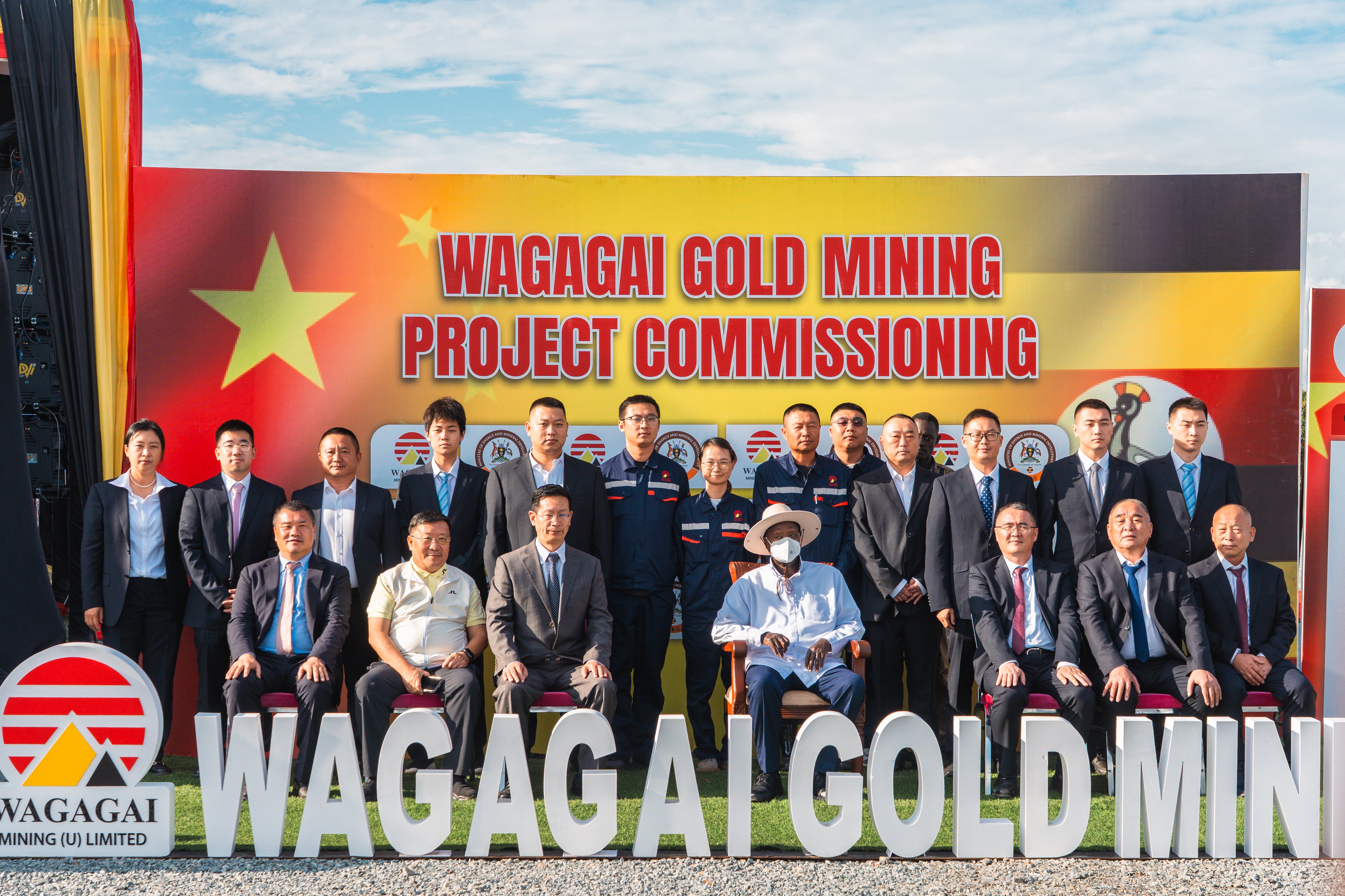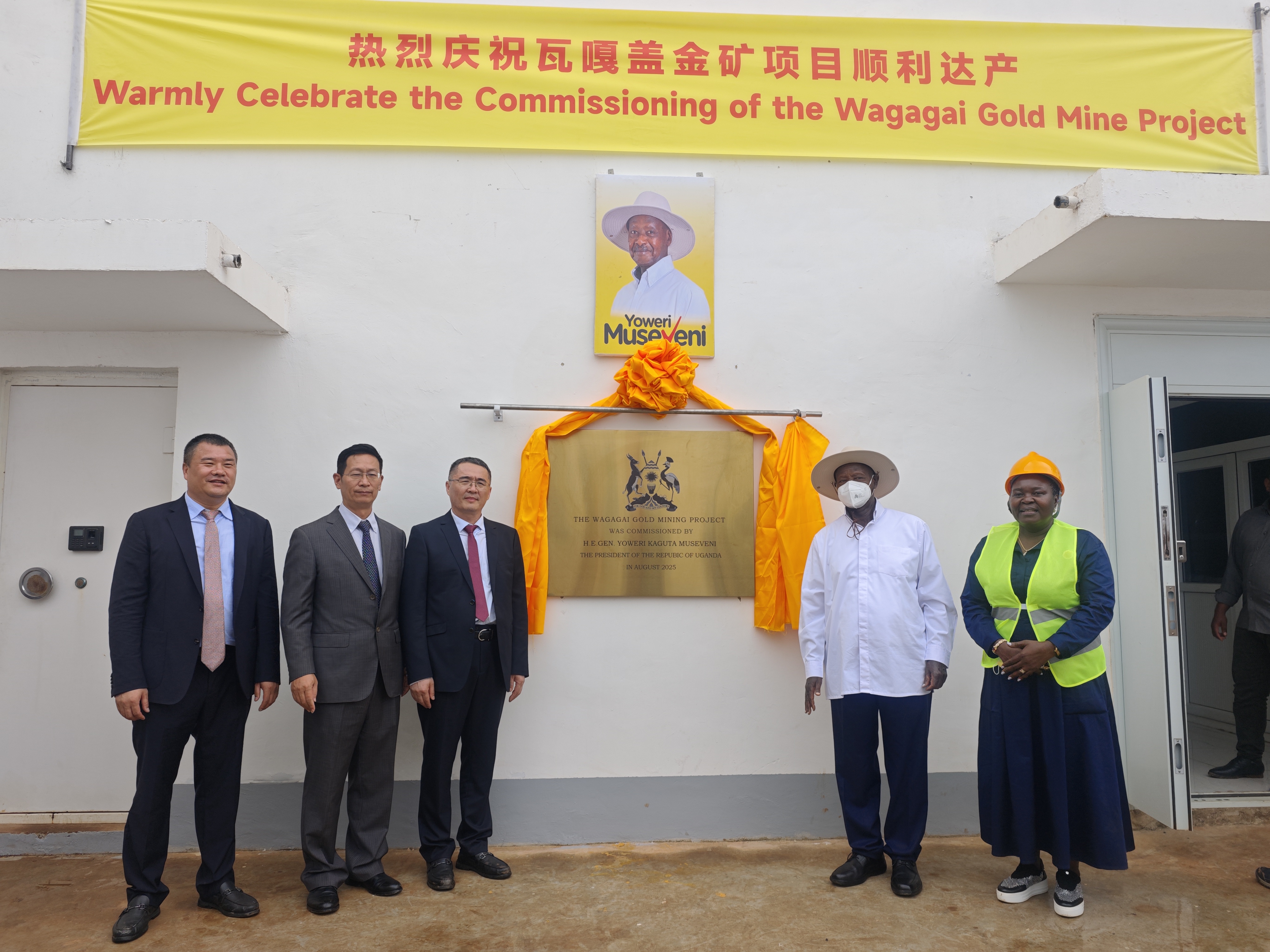 吉時(shí)吉刻,總統(tǒng)閣下在大使張利忠閣下和眾位部長(zhǎng)的陪同下,緩緩拉開金色幕布,鐫刻著“Wagagai Gold Mine Project”的銘牌在陽(yáng)光下熠熠生輝,象征著烏干達(dá)首個(gè)大型工業(yè)化金礦的正式投產(chǎn)和全面運(yùn)營(yíng)。